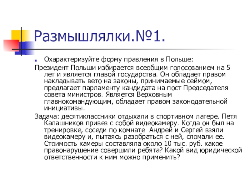 Охарактеризуйте форму правления в Польше: