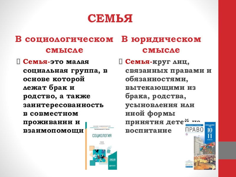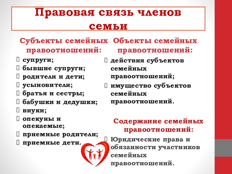 Семья-круг лиц, связанных правами и обязанностями, вытекающими из брака, родства, усыновления или иной формы принятия детей на воспитание