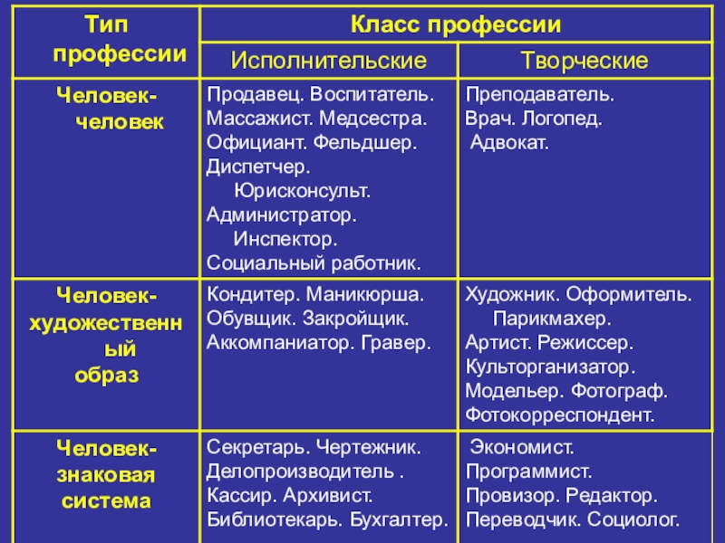 Слайд 31 Человек-человек. Тут для специалиста предметом труда является другой человек, а