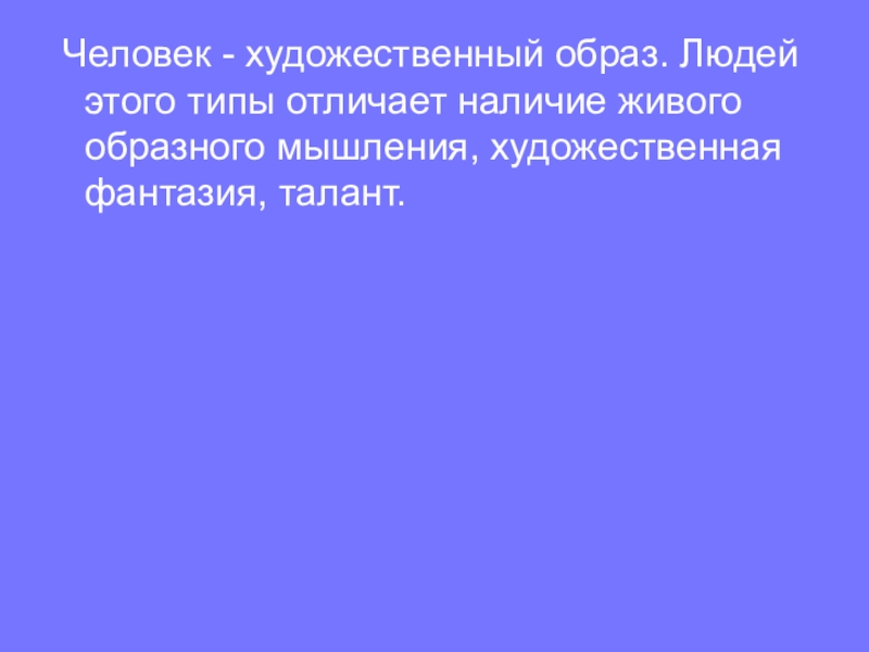 Слайд 35 Человек - художественный образ. Людей этого типы отличает наличие живого