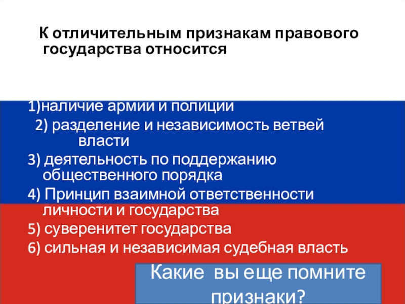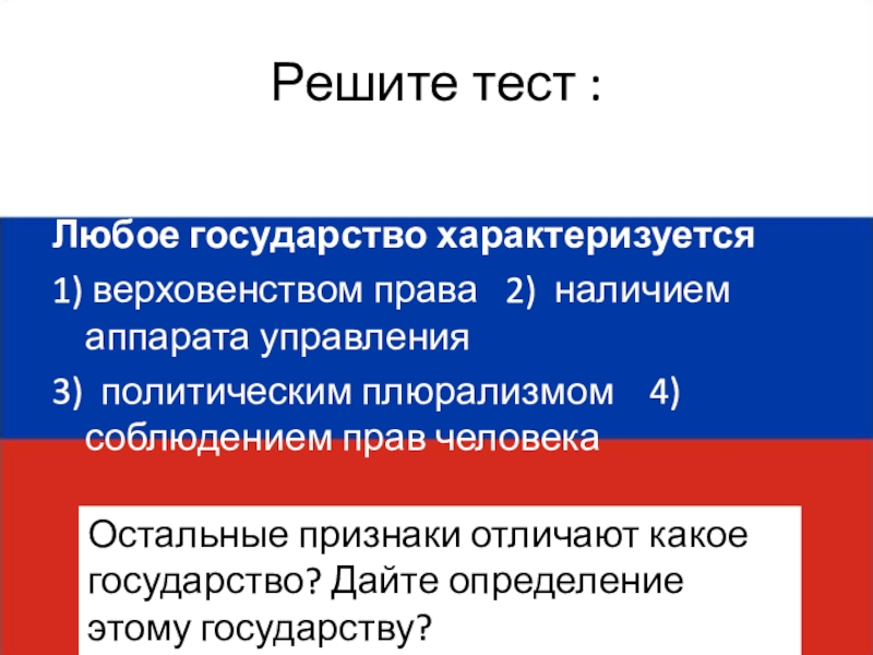 Остальные признаки отличают какое государство? Дайте определение этому государству?