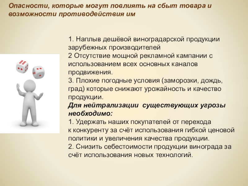 Слайд 18Опасности, которые могут повлиять на сбыт товара и возможности противодействия им