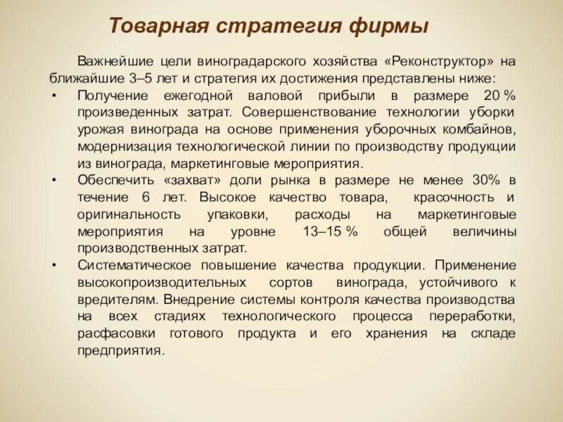 Стратегическая цель виноградарского хозяйства«Реконструктор»