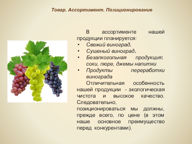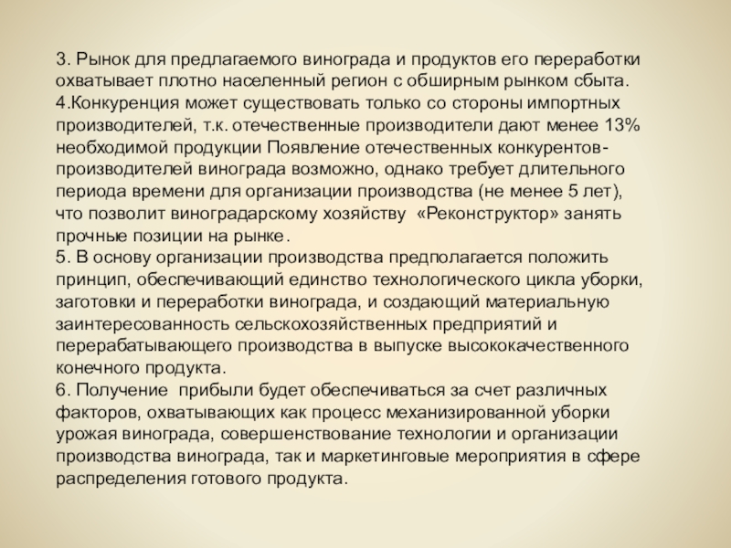 Слайд 103. Рынок для предлагаемого винограда и продуктов его переработки охватывает плотно