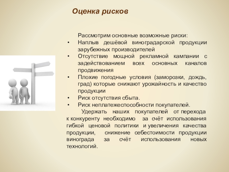Удержать наших покупателей от перехода к конкуренту необходимо за счёт использования гибкой ценовой политики и увеличения качества продукции, снижение себестоимости продукции винограда за счёт использования новых технологий.