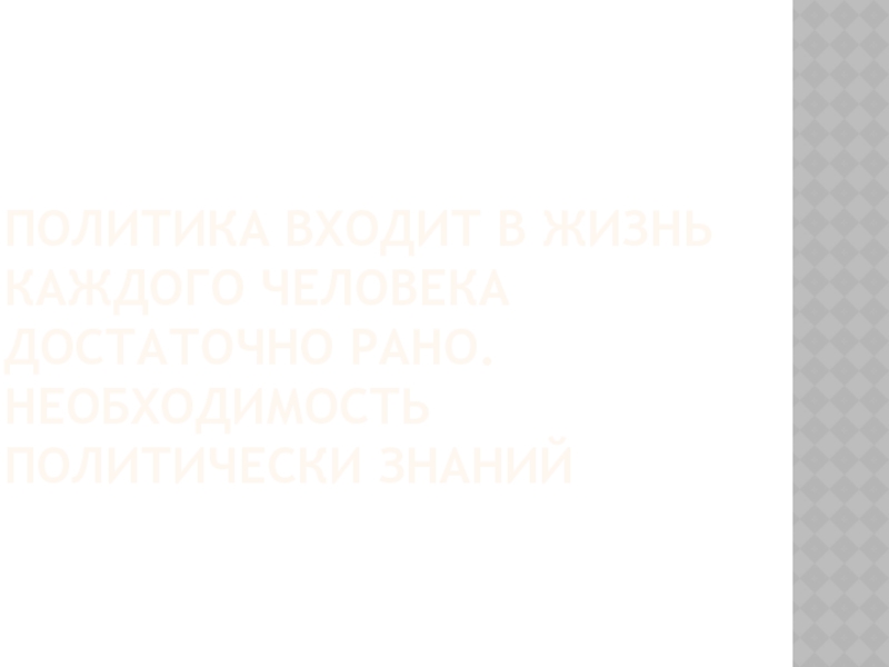 Слайд 6Политика входит в жизнь каждого человека достаточно рано. Необходимость политически знаний