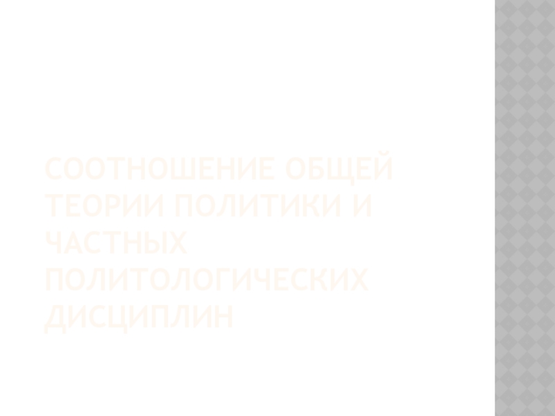 Слайд 3Соотношение общей теории политики и частных политологических дисциплин
