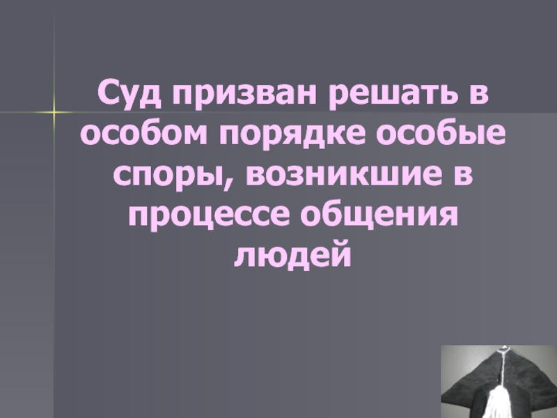 Слайд 5Суд призван решать в особом порядке особые споры, возникшие в процессе