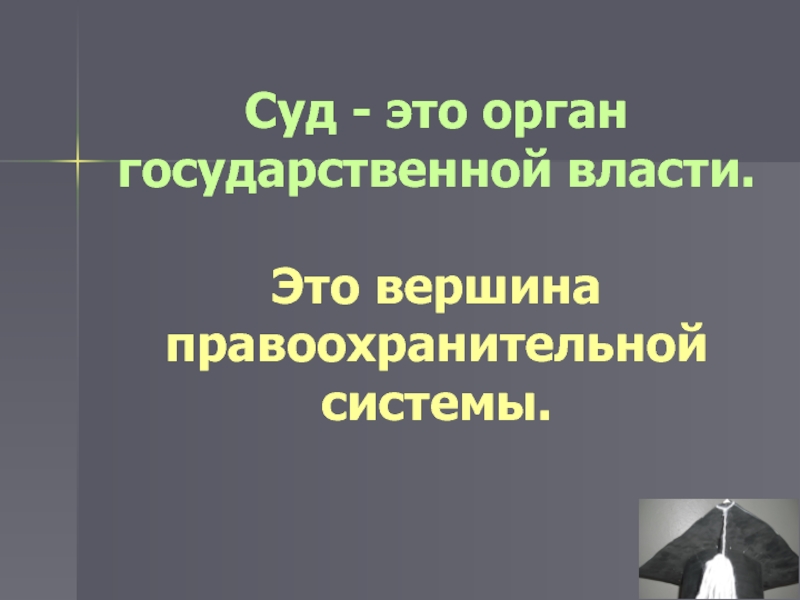 Слайд 4Суд - это орган государственной власти. Это вершина правоохранительной системы.