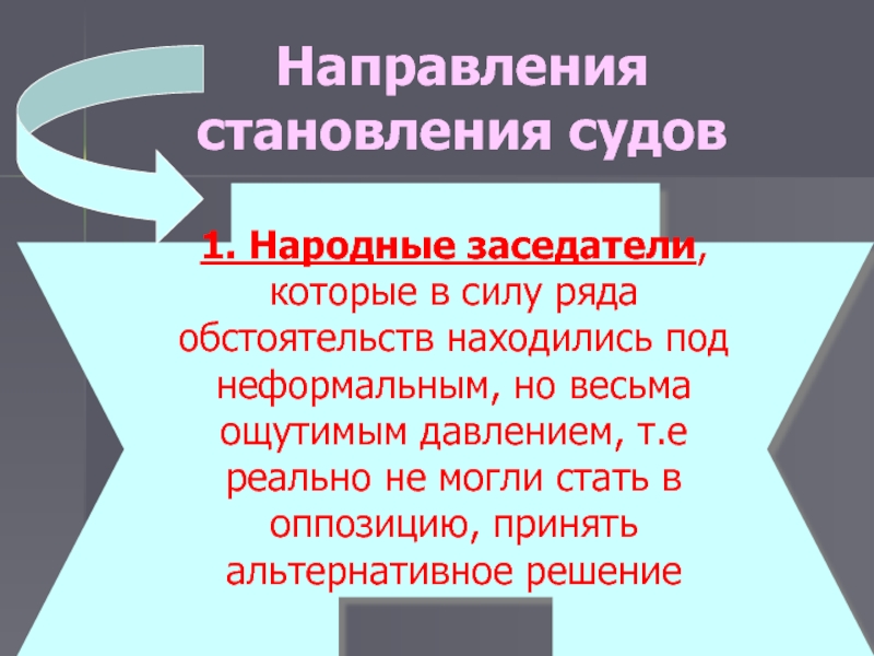 Направления становления судов1. Народные заседатели, которые в силу ряда обстоятельств находились под неформальным, но весьма ощутимым давлением,