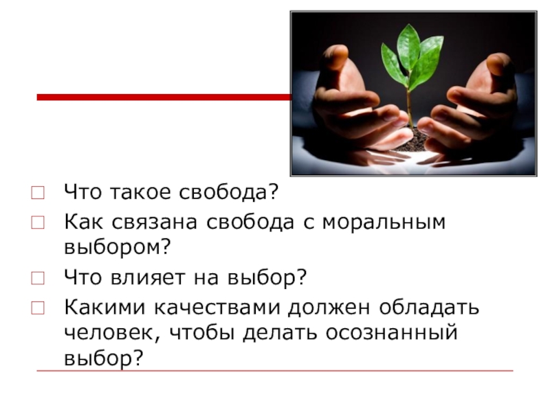 Что такое свобода?Как связана свобода с моральным выбором?Что влияет на выбор?Какими качествами должен обладать человек, чтобы делать