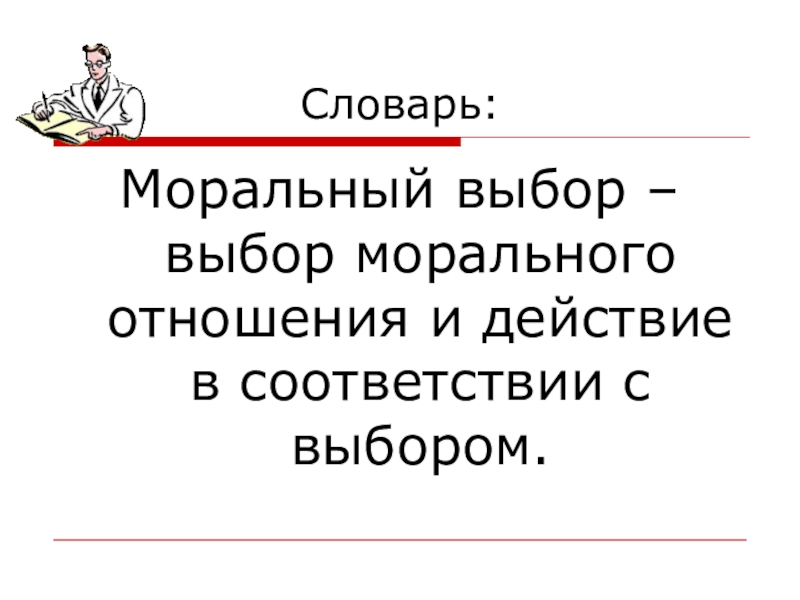 Слайд 9Моральный выбор – выбор между различными способами поведения: