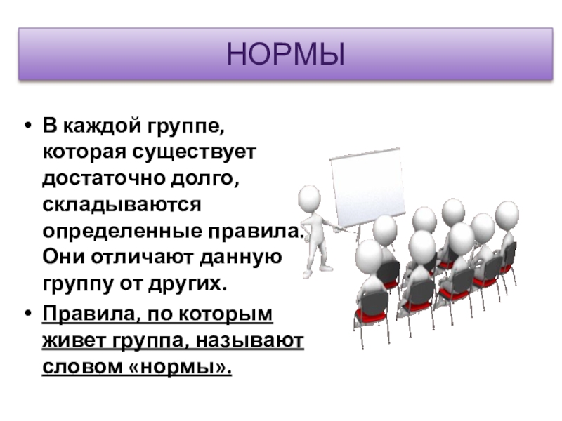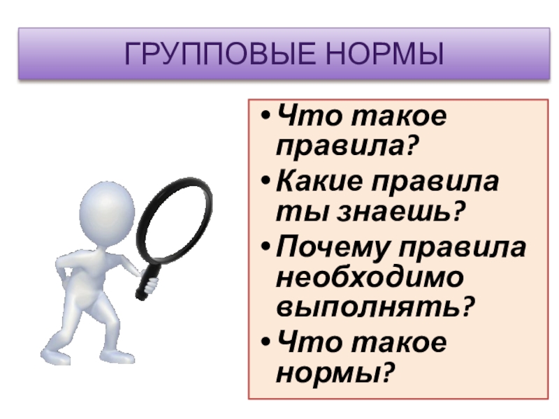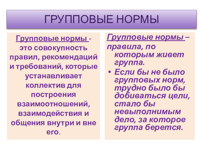 Групповые нормы - это совокупность правил, рекомендаций и требований, которые устанавливает коллектив для построения взаимоотношений, взаимодействия и общения внутри и вне его.