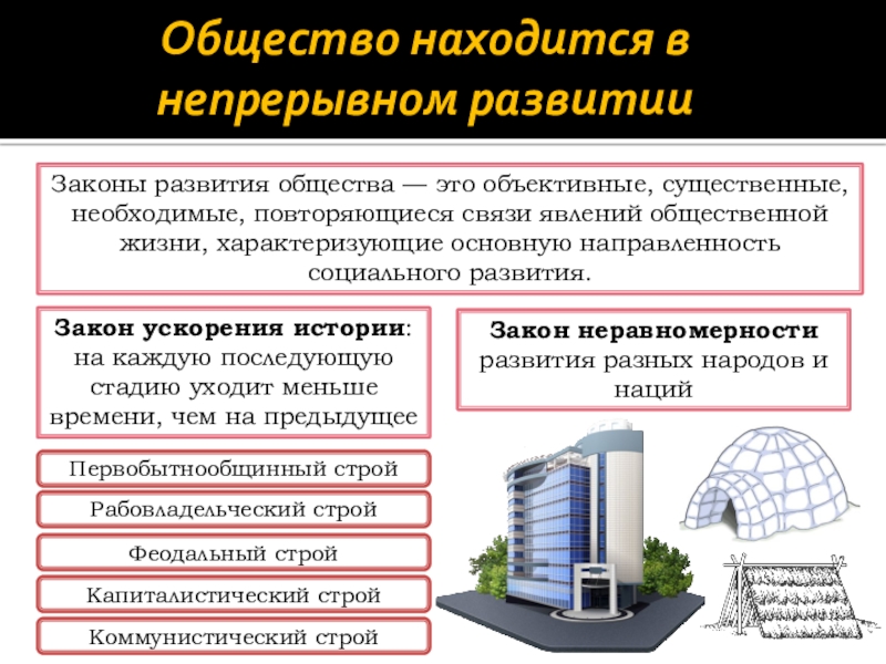 развития общества — это объективные, существенные, необходимые, повторяющиеся связи явлений общественной жизни, характеризующие основную направленность социального развития.