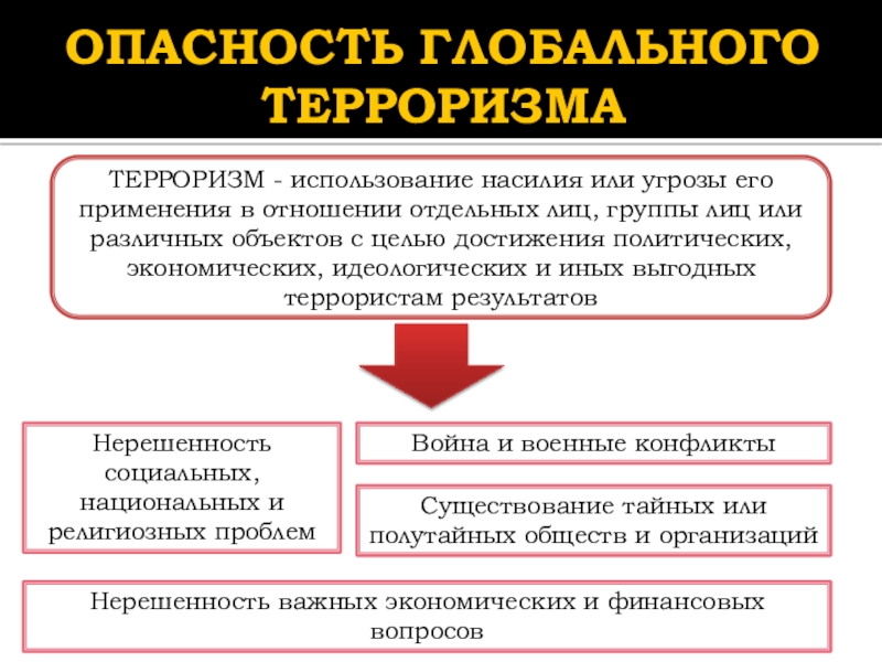 Слайд 51ОПАСНОСТЬ ГЛОБАЛЬНОГО ТЕРРОРИЗМА