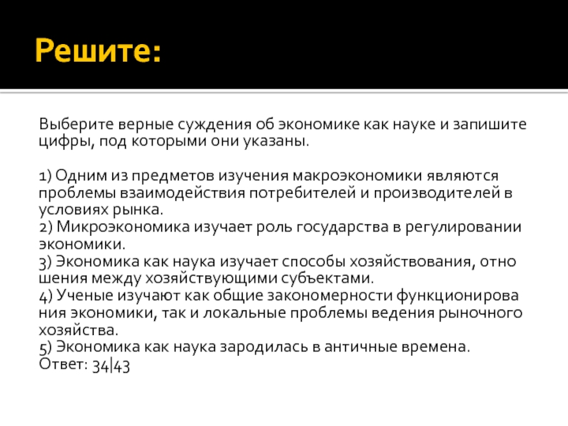 Выберите верные суждения об экономике как науке и запишите цифры, под
