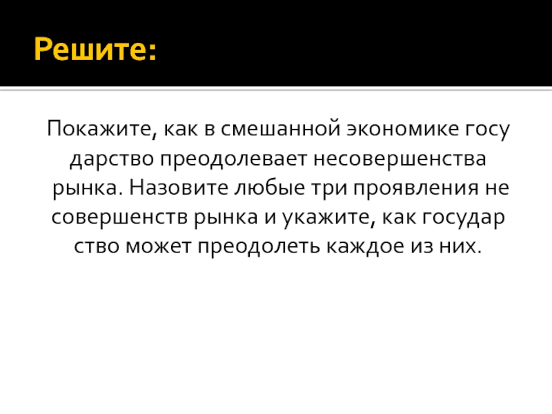 Покажите, как в смешанной экономике государство преодолевает несовершенства рынка. Назовите любые
