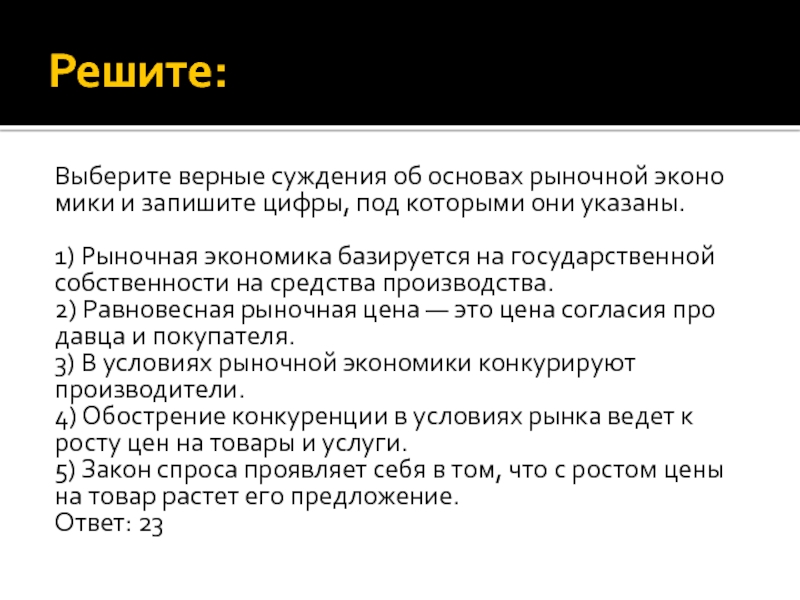 Выберите верные суждения об основах рыночной экономики и запишите цифры, под
