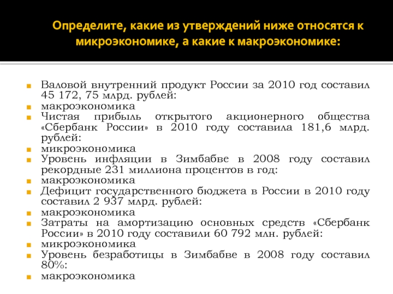 Слайд 13Определите, какие из утверждений ниже относятся к микроэкономике, а какие к