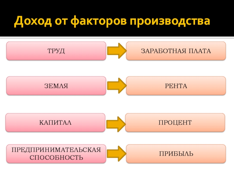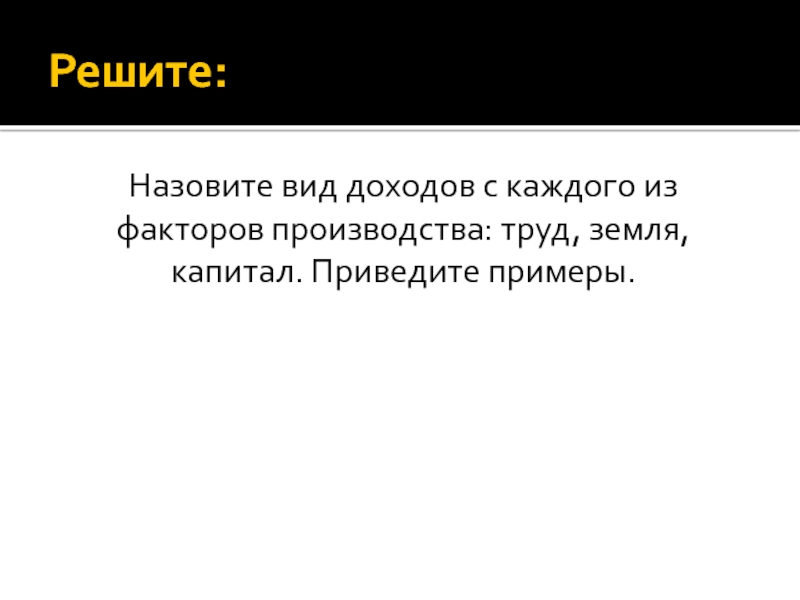 Назовите вид доходов с каждого из факторов производства: труд, земля, капитал.