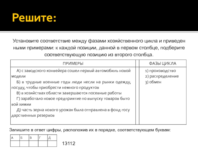 Установите соответствие между фазами хозяйственного цикла и приведенными примерами: к каждой