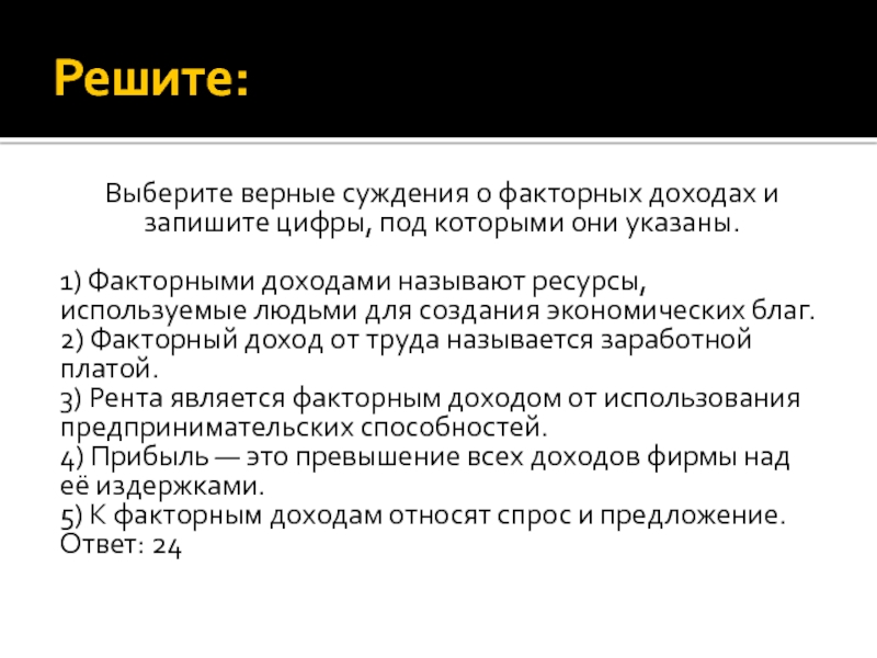 Выберите верные суждения о факторных доходах и запишите цифры, под которыми