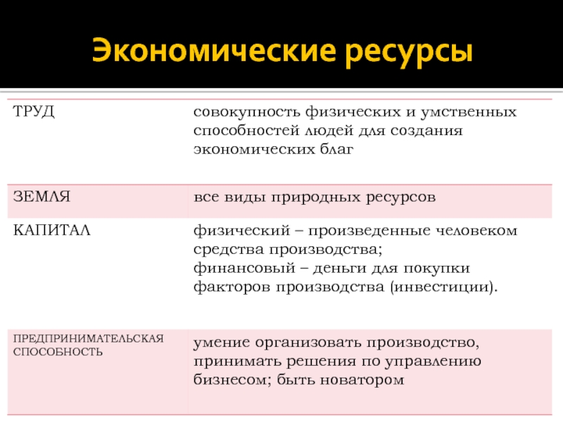 Земля, трудовые ресурсы, фактор производства, капитал, информация.