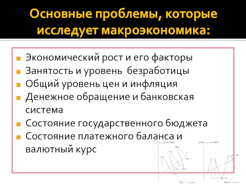 Слайд 12Основные проблемы, которые исследует макроэкономика: