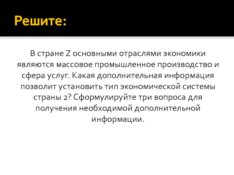 сфера услуг. Какая дополнительная информация позволит установить тип экономической системы страны 2? Сформулируйте три вопроса для получения необходимой дополнительной информации.