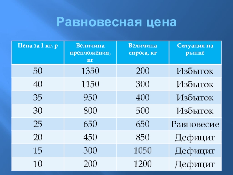 Определите равновесную цену и равновесное количество товара при этой цене. Постройте кривые спроса и предложения