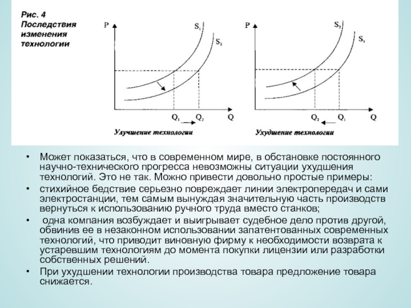 Слайд 11При ухудшении технологии производства товара предложение товара снижается.