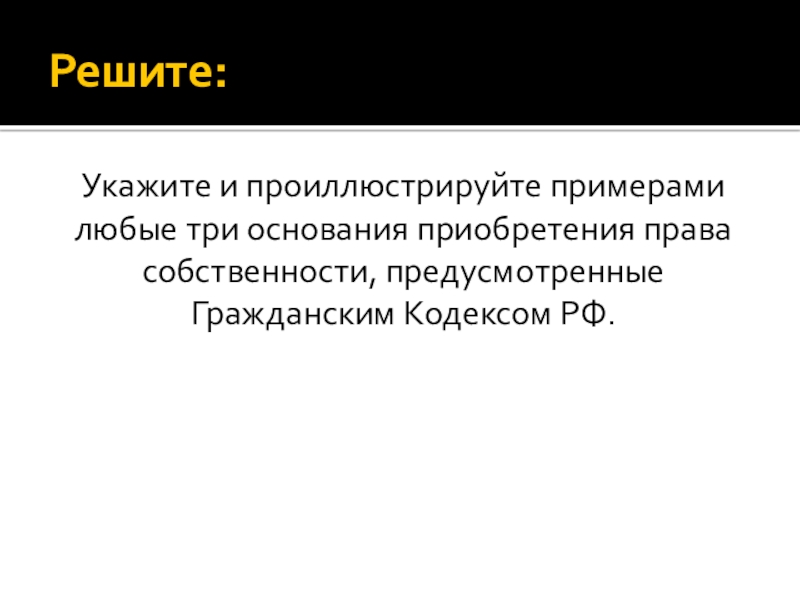 Укажите и проиллюстрируйте примерами любые три основания приобретения права собственности, предусмотренные