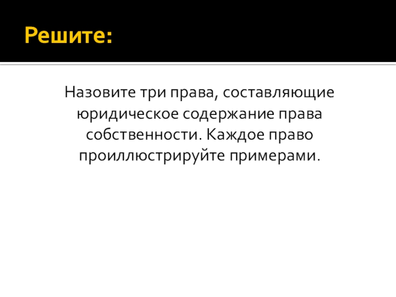 Назовите три права, составляющие юридическое содержание права собственности. Каждое право проиллюстрируйте