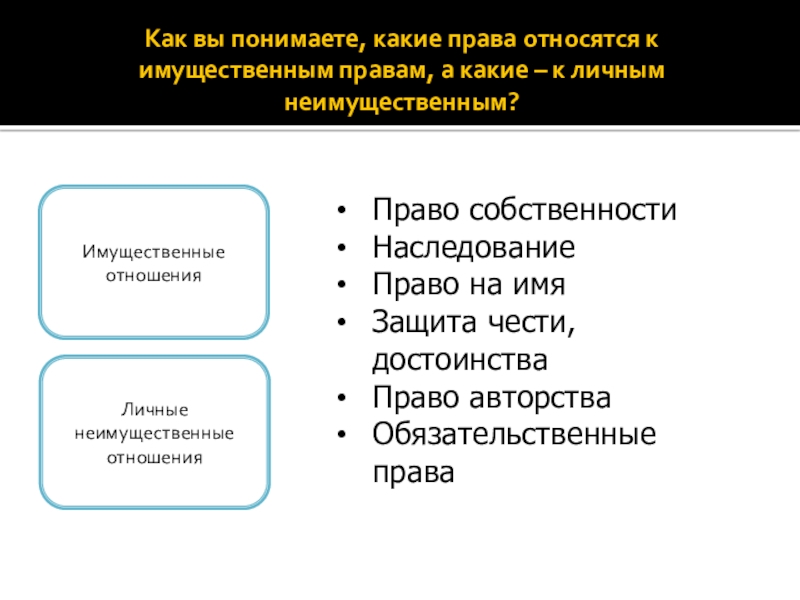 Слайд 33Как вы понимаете, какие права относятся к имущественным правам, а какие