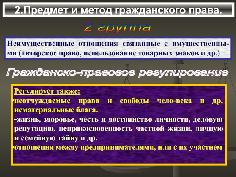 Регулирующие отношения, составляющие предмет гражданского права.
