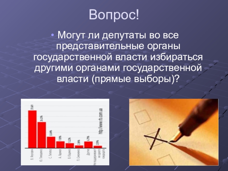 Вопрос!Могут ли депутаты во все представительные органы государственной власти избираться другими органами государственной власти (прямые выборы)?
