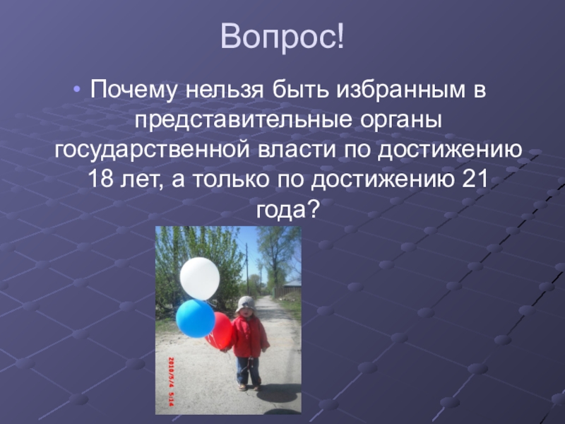 Вопрос!Почему нельзя быть избранным в представительные органы государственной власти по достижению 18 лет, а только по достижению
