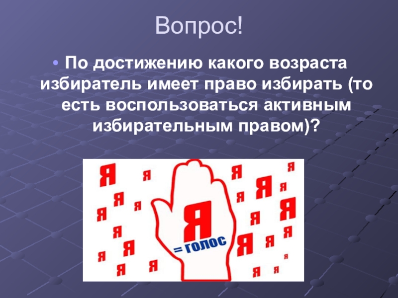 Вопрос!По достижению какого возраста избиратель имеет право избирать (то есть воспользоваться активным избирательным правом)?