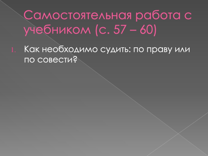 Самостоятельная работа с учебником (с. 57 – 60)Как необходимо судить: по праву или по совести?