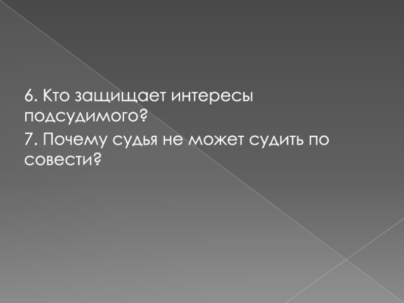 6. Кто защищает интересы подсудимого?7. Почему судья не может судить по совести?