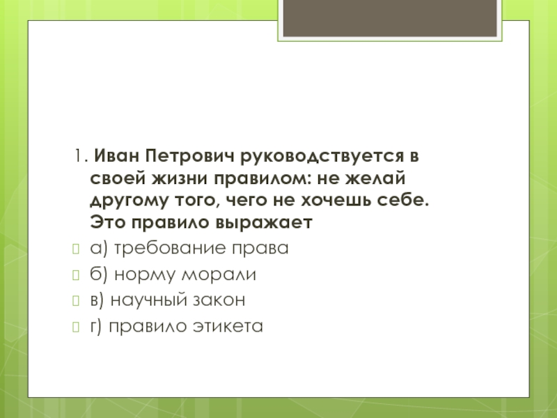 Г. Терпимость к иного рода взглядам, нравам, привычкам, культуре.