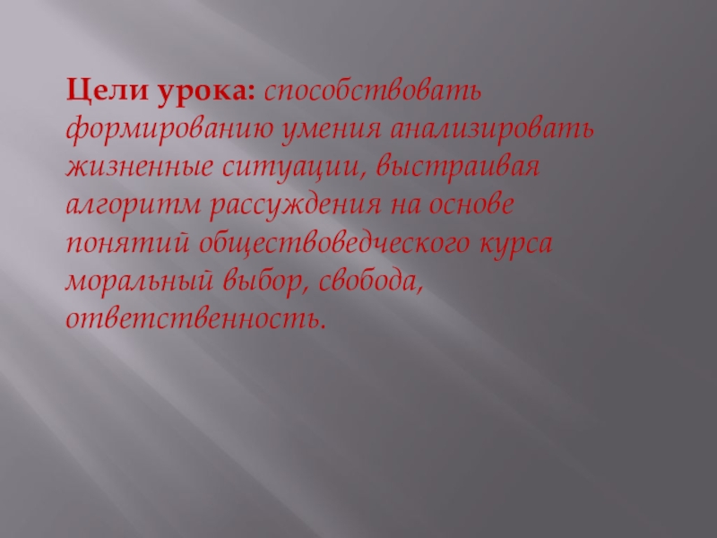 на основе понятий обществоведческого курса моральный выбор, свобода, ответственность.
