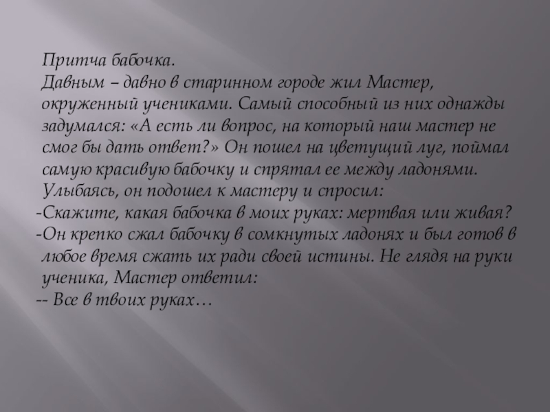 Это сайт презентаций, где можно хранить и обмениваться своими презентациями, докладами, проектами, шаблонами в формате PowerPoint с другими пользователями. Мы помогаем школьникам, студентам, учителям, преподавателям хранить и обмениваться учебными материалами.