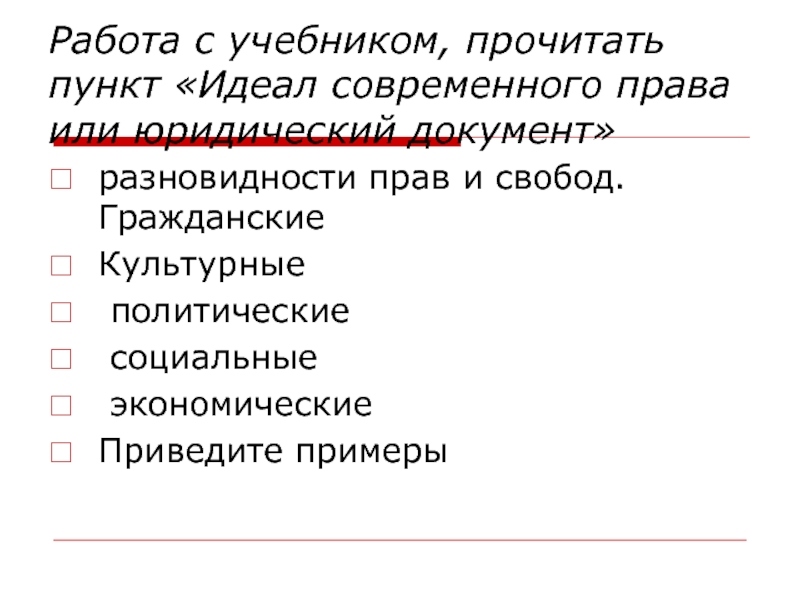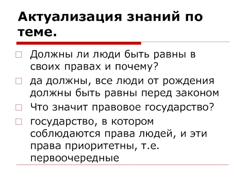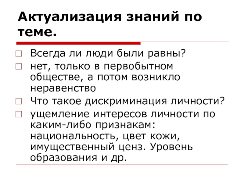 Носят всеобщий характер – равные права укадого человека.