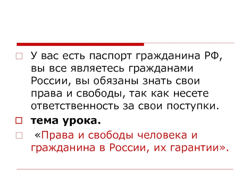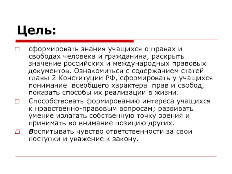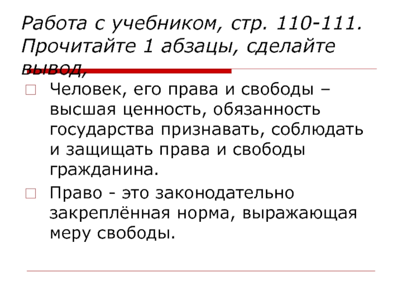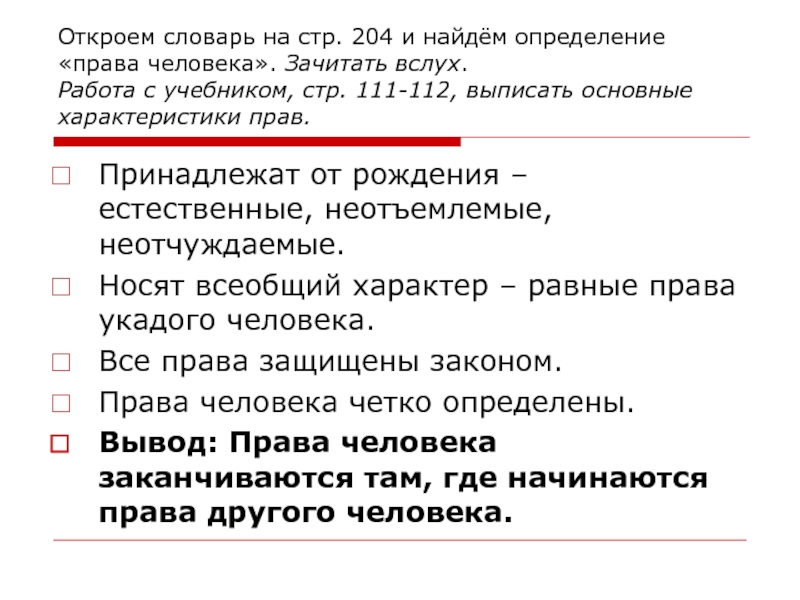 Вывод: Права человека заканчиваются там, где начинаются права другого человека.