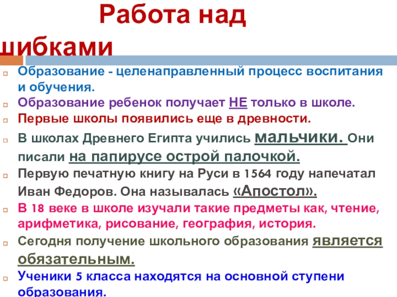 В школах Древнего Египта учились мальчики. Они писали на папирусе острой палочкой.