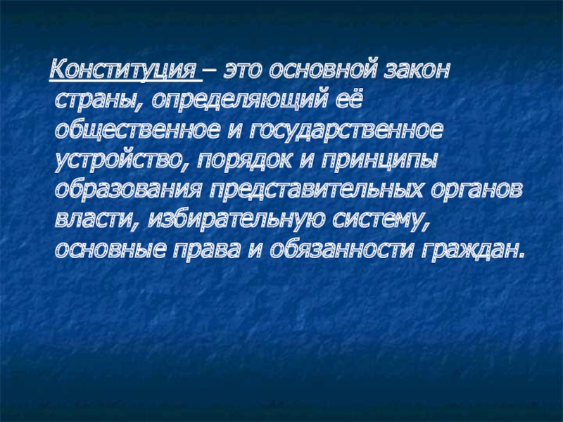 Слайд 15 Конституция – это основной закон страны, определяющий её общественное и