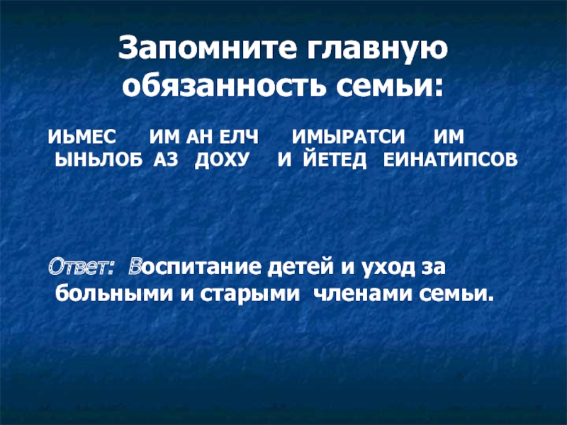 Ответ: Воспитание детей и уход за больными и старыми членами семьи.