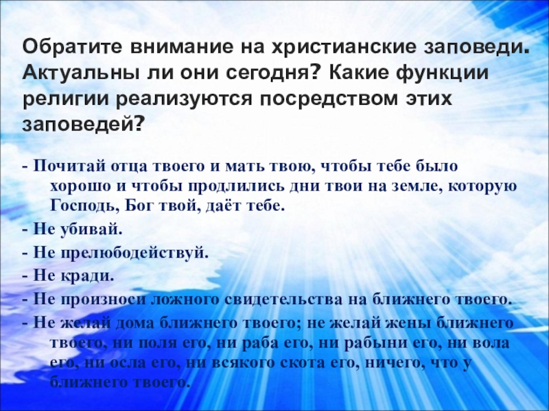- Почитай отца твоего и мать твою, чтобы тебе было хорошо и чтобы продлились дни твои на земле, которую Господь, Бог твой, даёт тебе.