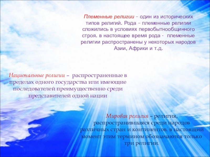 Национальные религии – распространенные в пределах одного государства или имеющие последователей преимущественно среди представителей одной нации